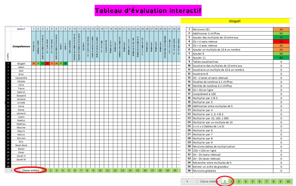 Tous les exercices peuvent être chronométrés et donnent lieu à un score que vous pourrez reporter sur le fichier excel qui générera une fiche individuelle pour chaque élève. Visuellement, c’est très parlant pour vous comme pour l’élève.