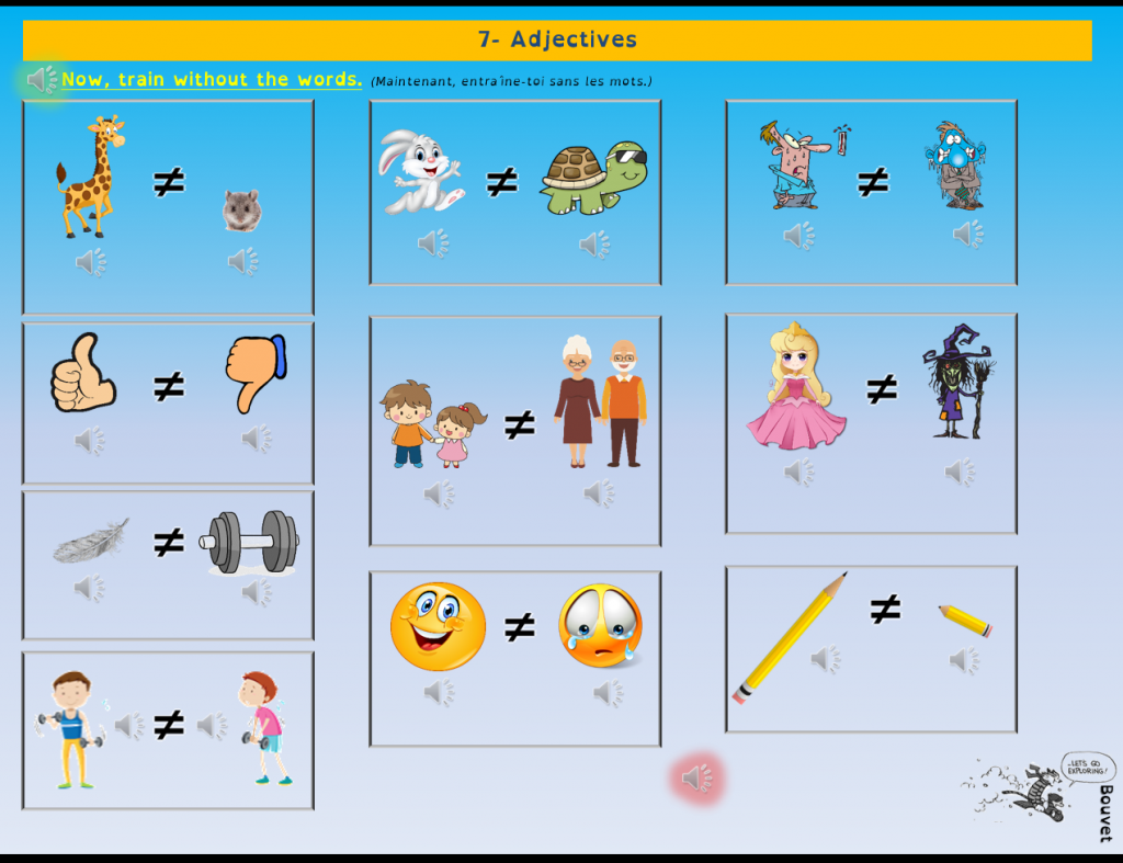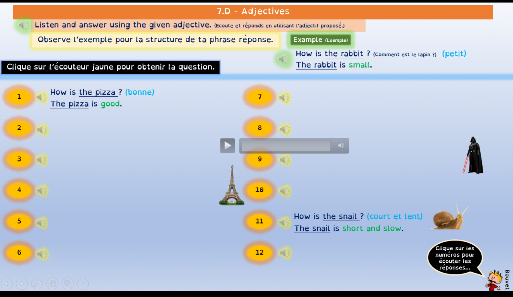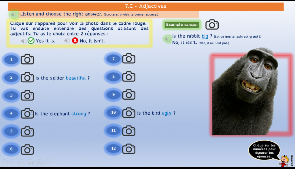 Pour les compréhensions orales, c’est aussi envisageable en groupe classe divisé en équipes qui, selon les activités, répondent soit sur ardoise soit en questionnaire de rapidité.
