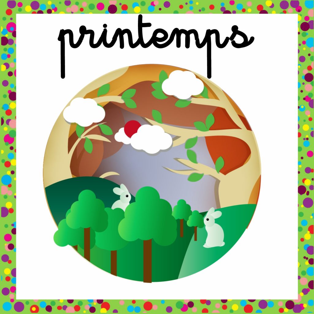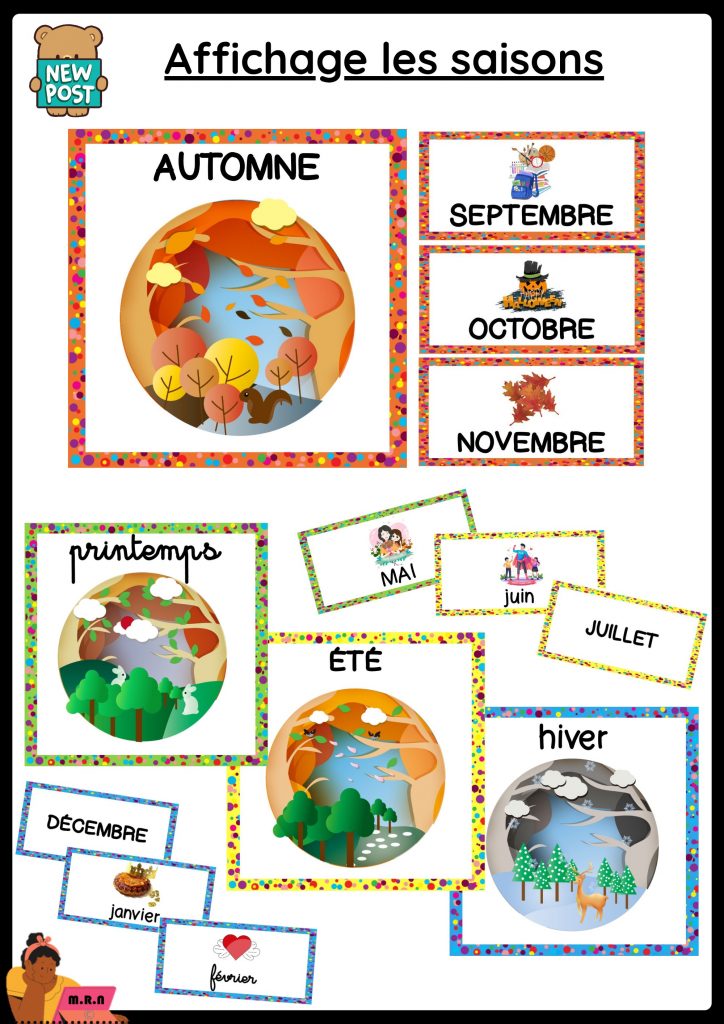 – 4 affiches DES SAISONS : image + écriture de la saison en script (MS / GS)