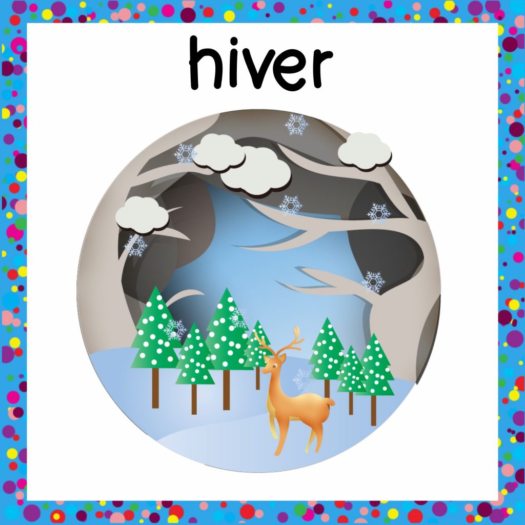 – 4 affiches DES SAISONS : image + écriture de la saison en cursif (GS)
