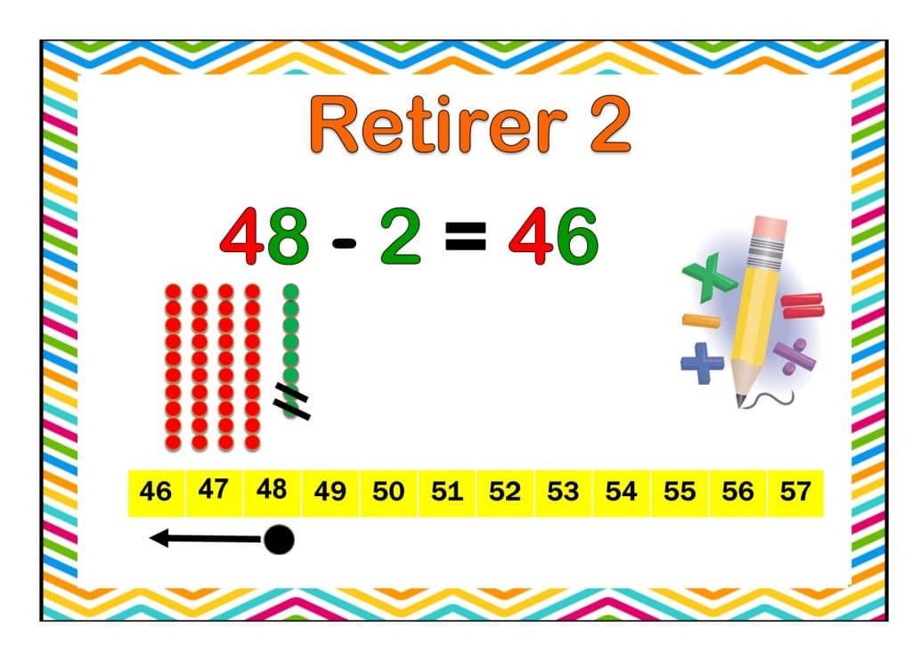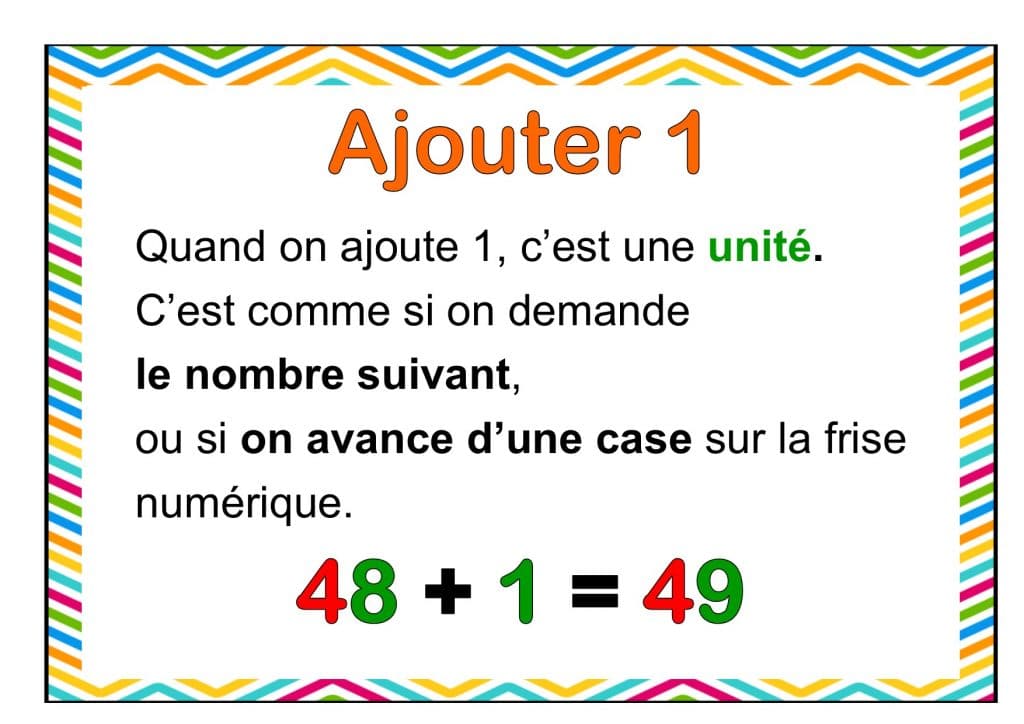 - 6 affiches pour construire des stratégies de calcul avec vos élèves (format A4) : ajouter 1, enlever 1, ajouter 2, enlever 2, ajouter 10, enlever 10.