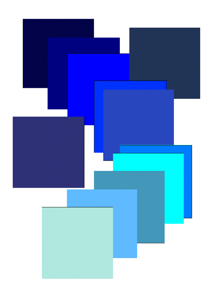 Les cartes montrent douze nuances d’un même bleu, du plus clair au plus foncé.
