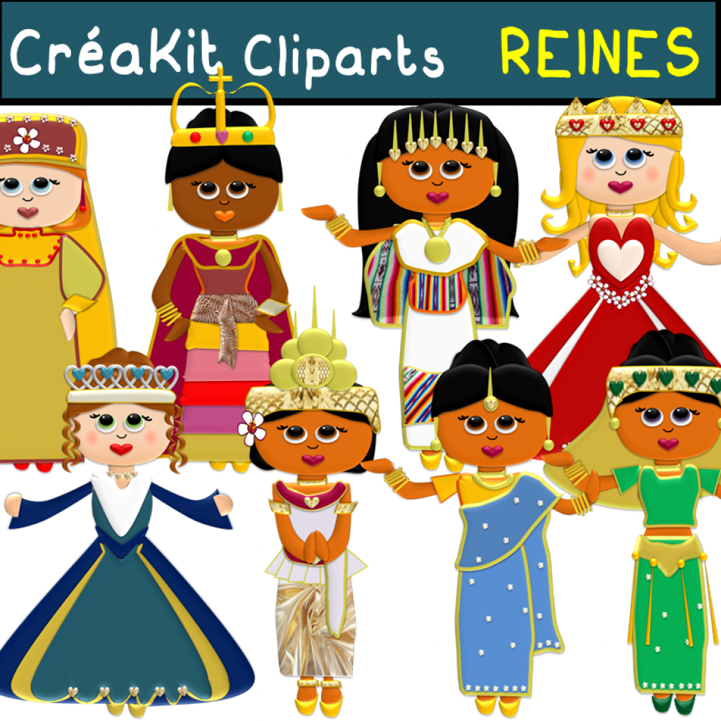 Ces images de haute résolution sont au format PNG… Elles peuvent donc être agrandies, insérées, superposées…Vous pouvez insérer ces petites reines dans vos créations et les utiliser pour créer vos propres supports (jeux, fiches de travail…) Vous trouverez dans ma boutique le Kit de Création des petits rois pour enrichir vos créations…