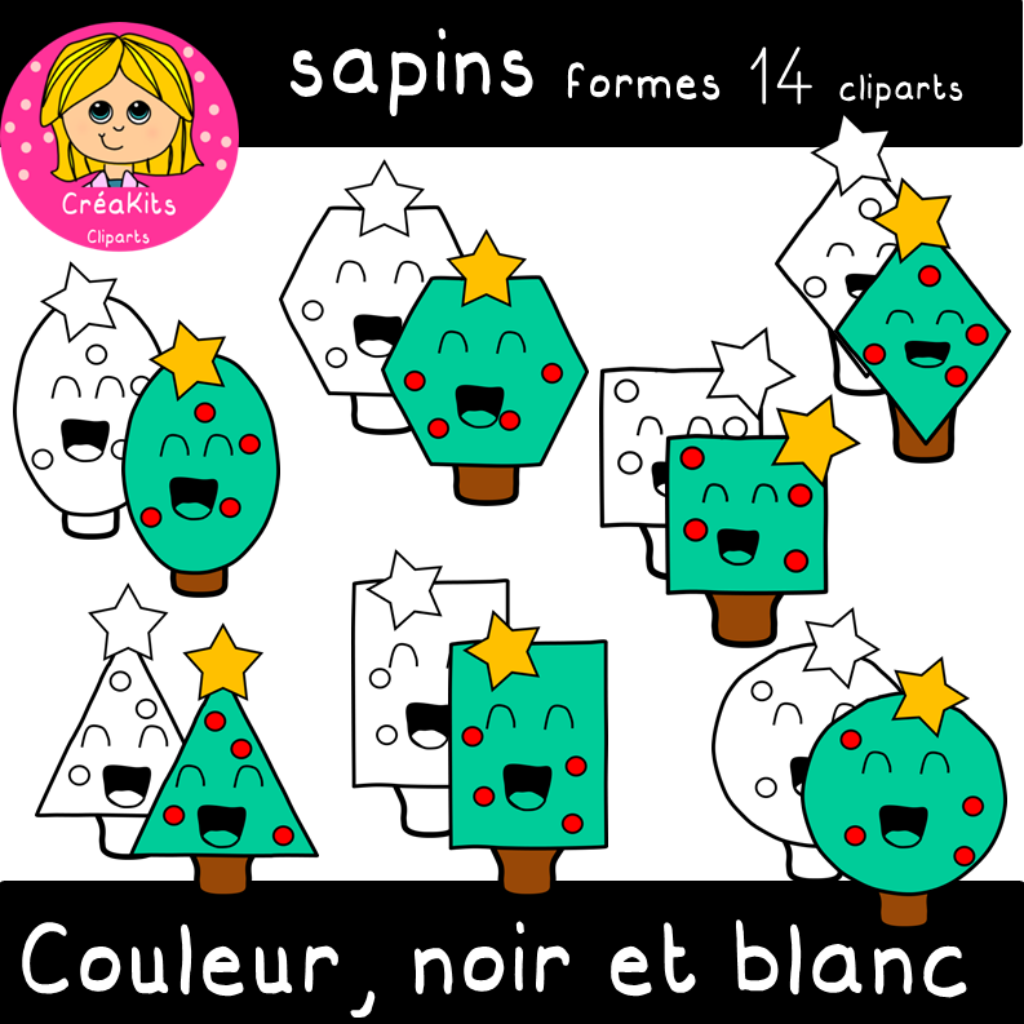2 sapins rectangles ( 1 couleur, 1 noir et blanc)