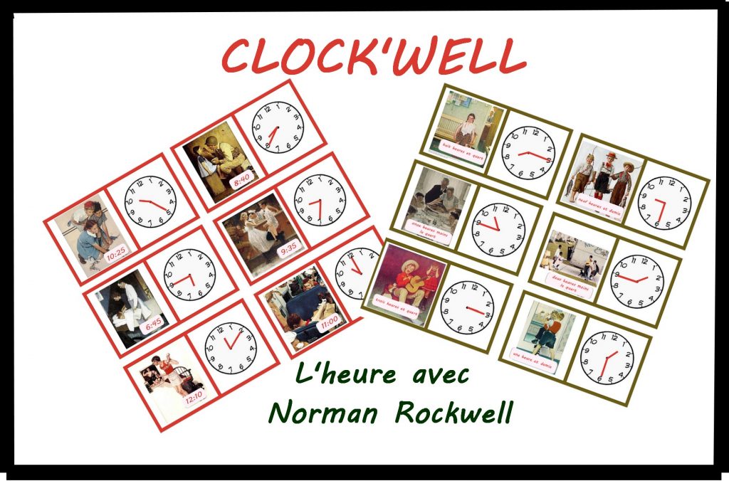 -18 cartes œuvres d’art et 18 cartes horloges à associer pour réviser les demie, quart et moins le quart