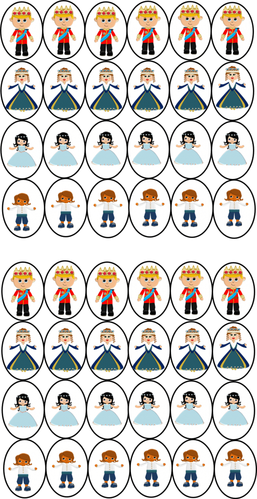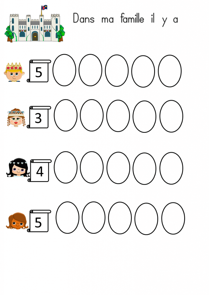 -L’élève doit composer la bonne quantité de rois, reines, princesses et princes selon le chiffre indiqué
