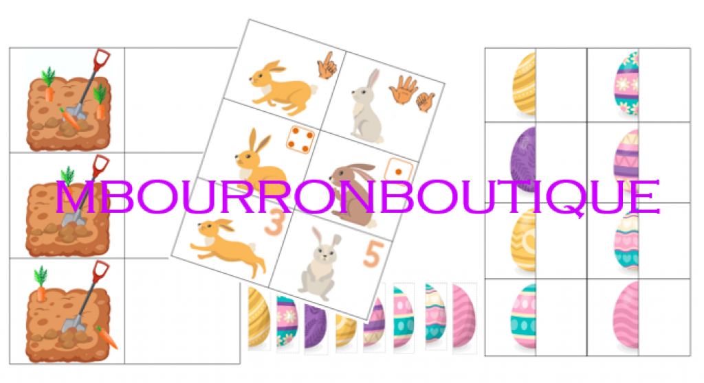 1/ La symétrie des œufs : il s’agit pour l’enfant de retrouver l’autre moitié de chaque oeuf de Pâques, cela développe sa discrimination visuelle.