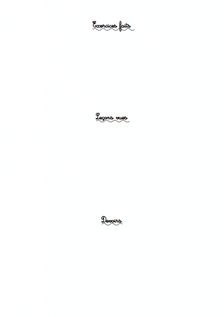 Des fiches avec de la place pour mettre les exercices faits, les leçons vues et les devoirs.