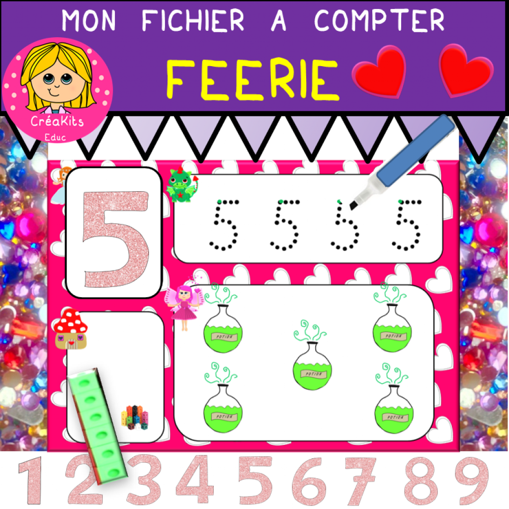 Ce fichier contient 9 plans de travail ( 1 planche pour chaque chiffre) sur lesquels l’enfant doit :