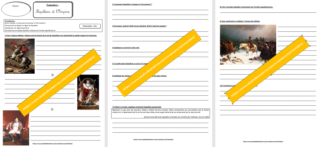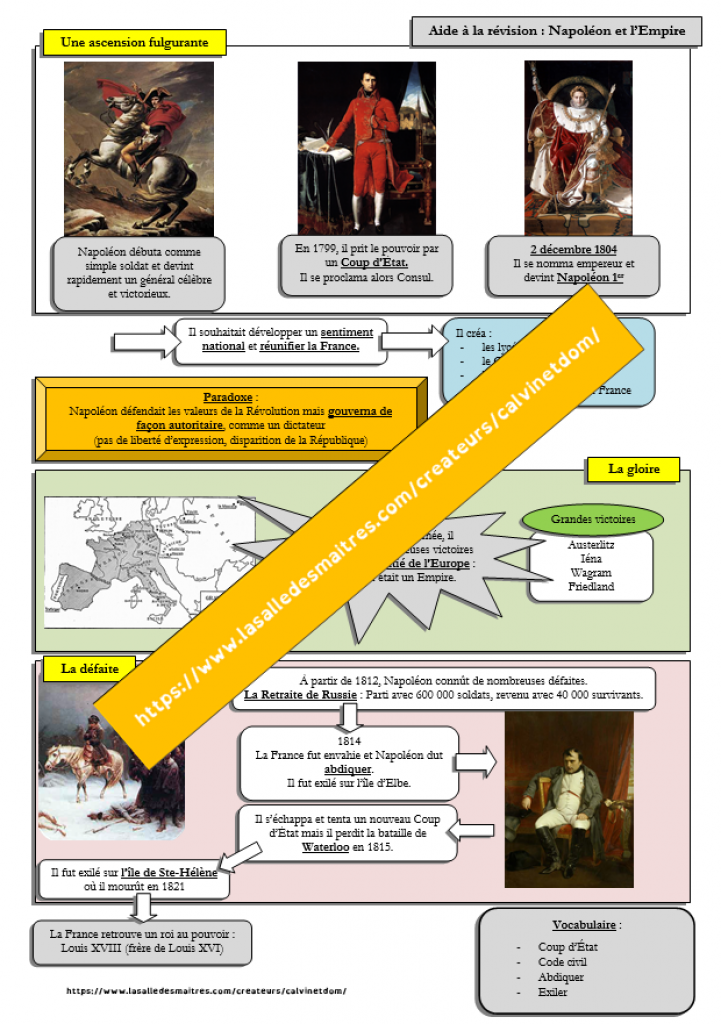 Vous trouverez ici tous les documents utiles à la construction de la leçon Napoléon.