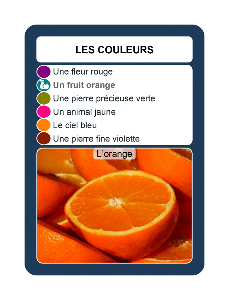 - Les couleurs : famille simple, avec peu d’écrit, à partir du CE1.
