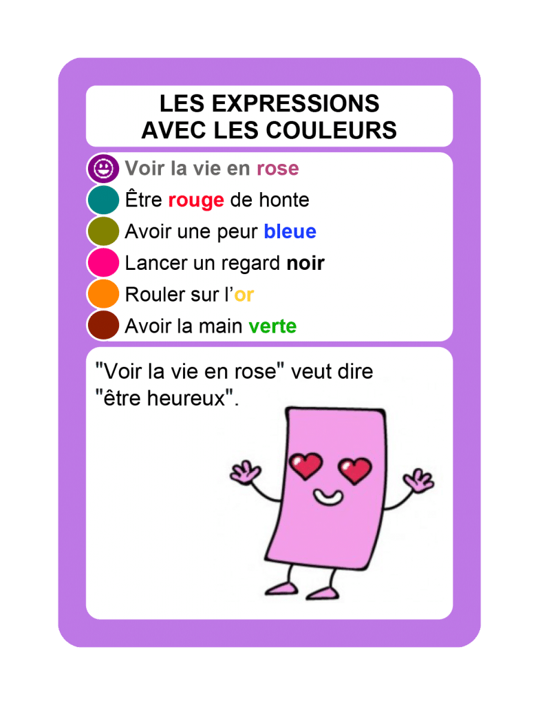 - Les expression avec les couleurs à partir de CE 1 ; découvrir le sens des expressions imagées