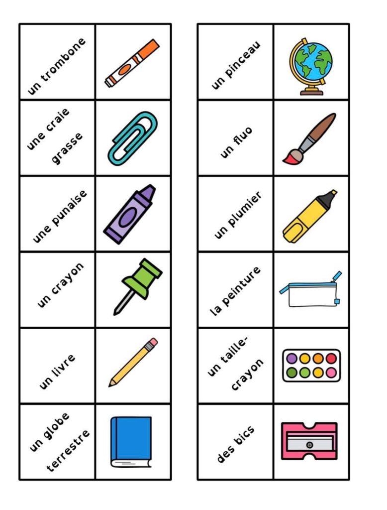 Voici 2 jeux en lien avec mon mur de mots et le vocabulaire de la rentrée des classes. N’oubliez pas d’imprimer sur du papier épais ou de doucher avec une feuille de couleur pour que les enfants ne soient pas tentés de voir les réponses au travers…
