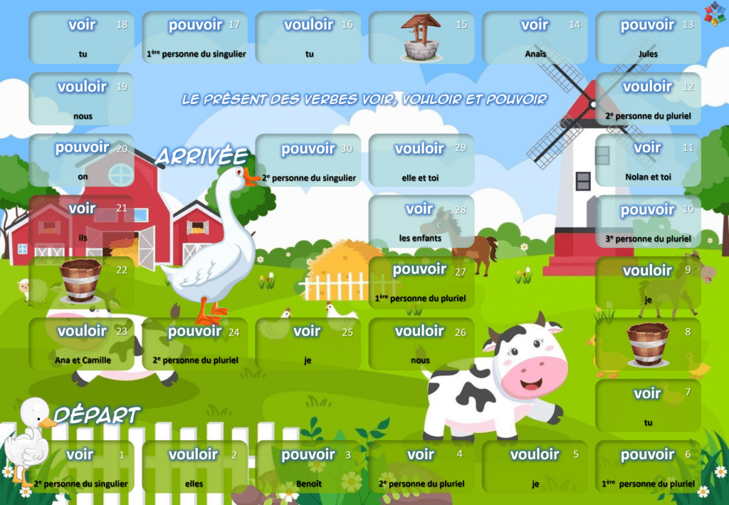 Jeu de plateau – Conjugaison – CE2/CM – Le présent des verbes voir, vouloir et pouvoir