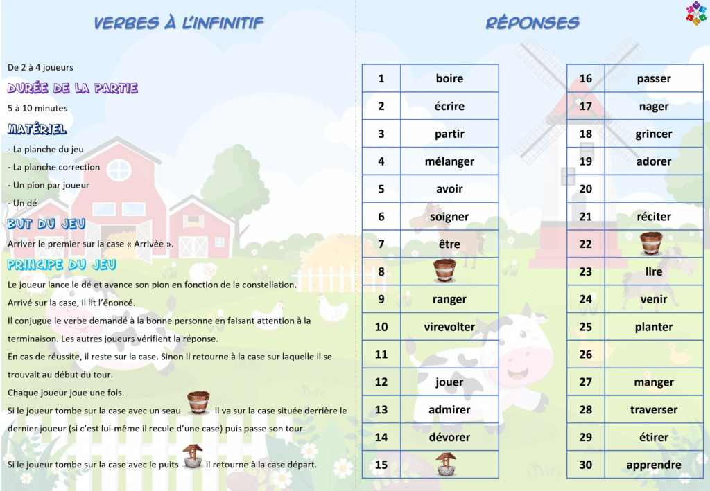Jeu de plateau – Conjugaison – CE2/CM – Verbes à l’infinitif