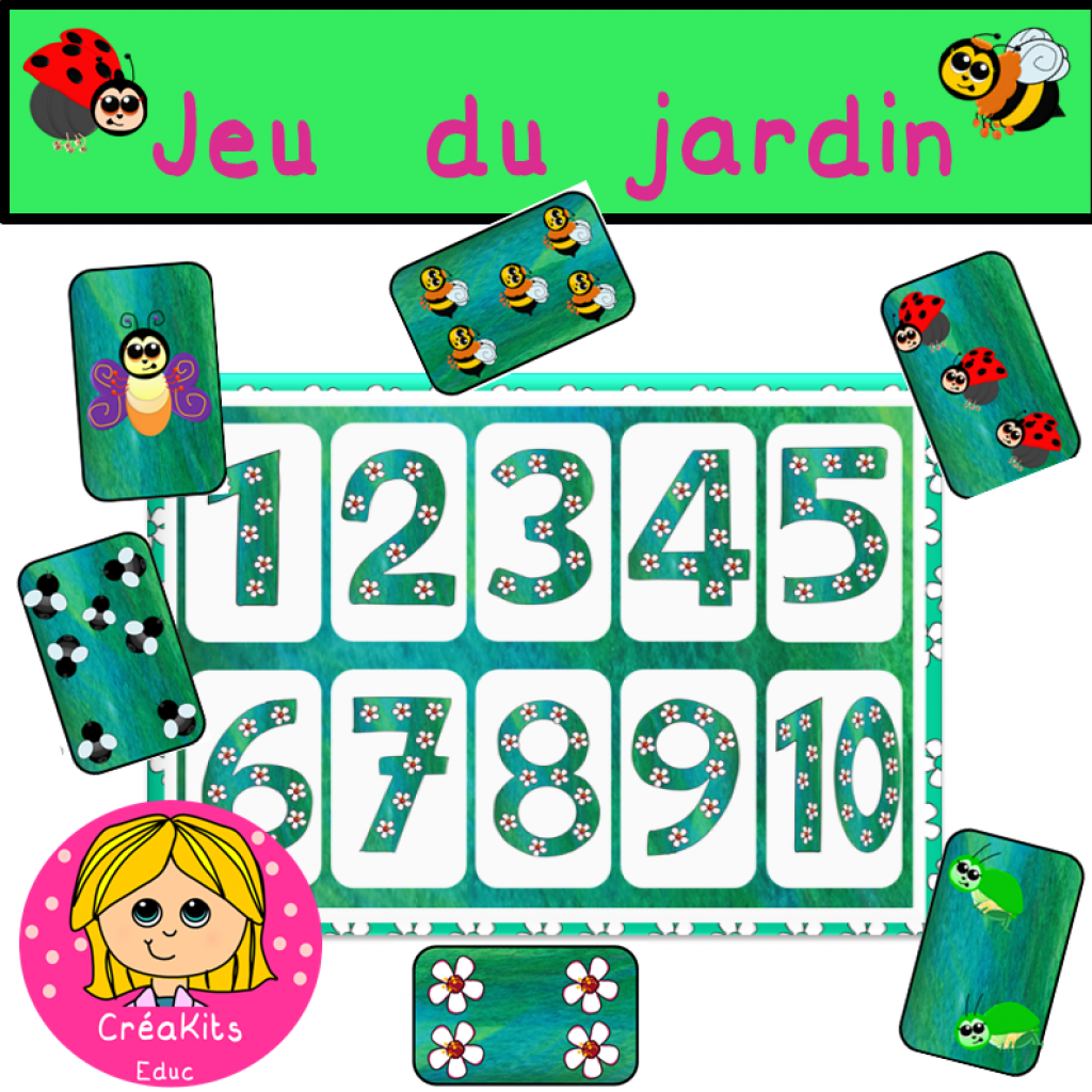 -l’enfant doit poser ses cartes quantités sur les cases chiffres dans son jardin…