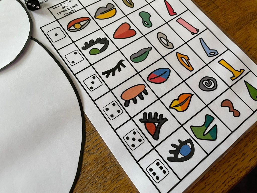 Page 7 : jeu de dé pour créer un visage. (jeu 2)
