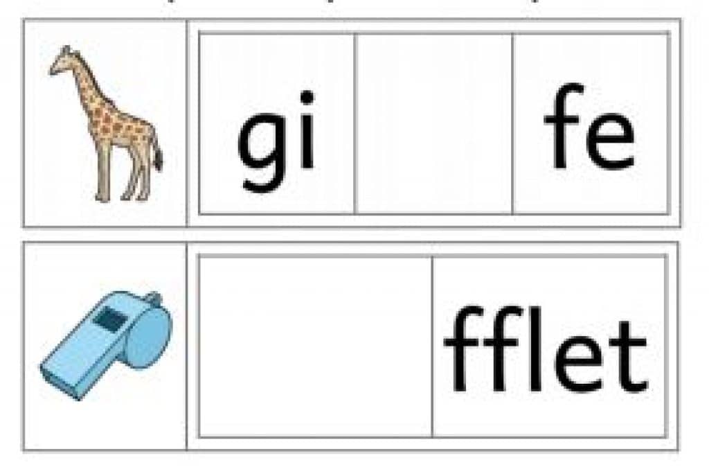 Les élèves doivent retrouver la syllabe manquante dans chaque mot parmi les étiquettes.