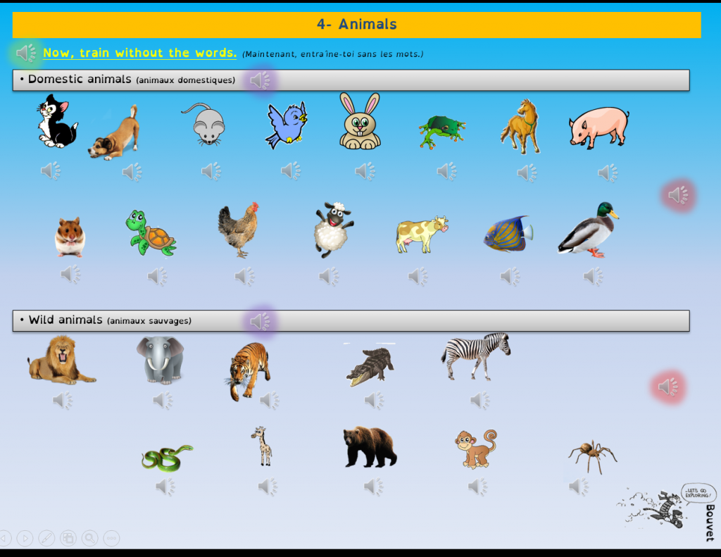 Il y a ainsi plus d’un millier de sons enregistrés sur l’ensemble des diaporamas anglais créés.