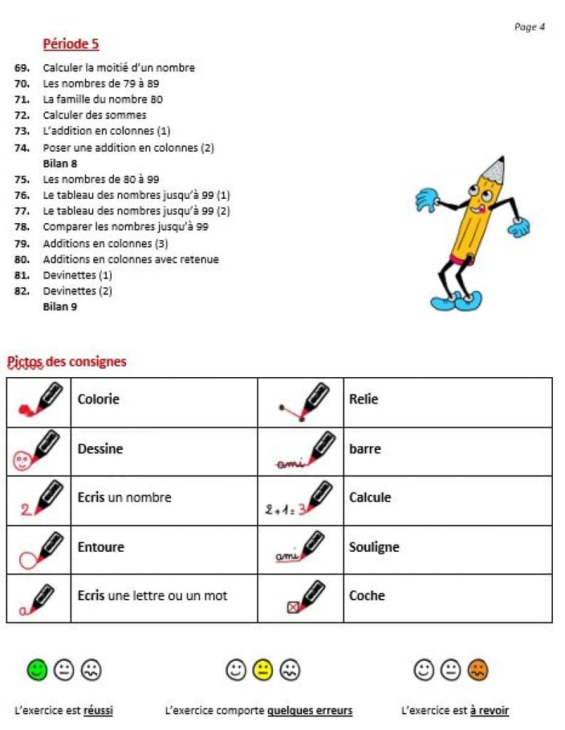 Au total 85 pages, 3 pages pour le sommaire et 82 pages d’exercices avec des petits problèmes (nommés devinettes) à résoudre chaque jour, et un exercice pour le calcul mental.