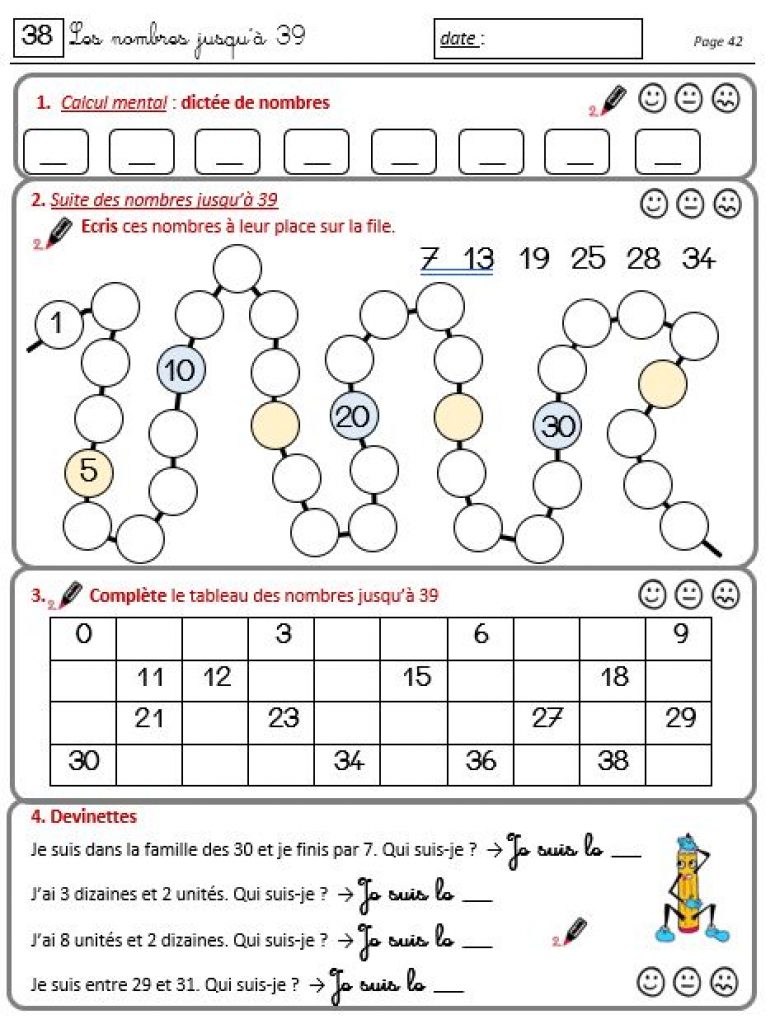 Vous trouverez un fichier pdf d’exercices progressifs concernant le programme à acquérir en mathématiques dans le domaine « nombres et calculs » pour une année de CP (version 2019)