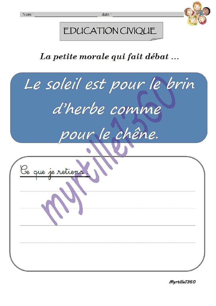 Voici un fichier de 20 petites morales qui peuvent servir de point de départ aux leçons de « vivre ensemble »