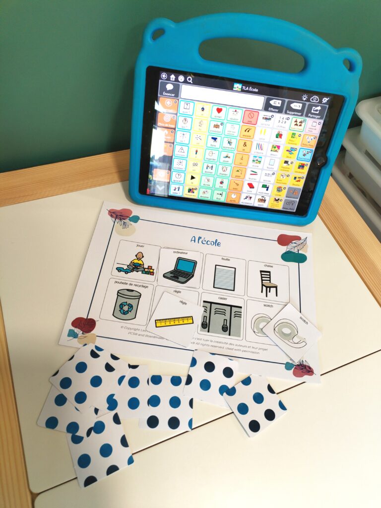 Il est idéal pour travailler avec les enfants porteurs de handicap équipés d’un outil de Communication Alternative et Augmentée (CAA)