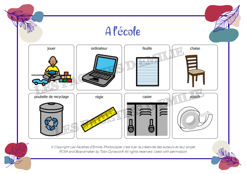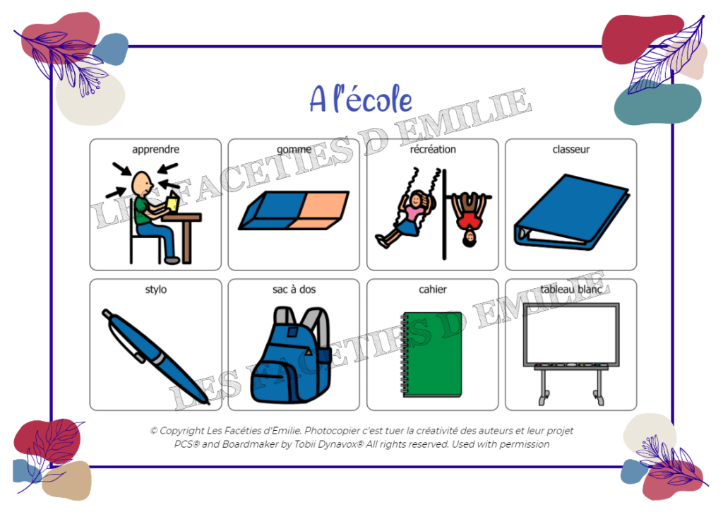 Ce jeu de Loto vous permettra d’aborder le lexique de l’Ecole grâce aux Pictogrammes PCS officiels de Tobiidynavox