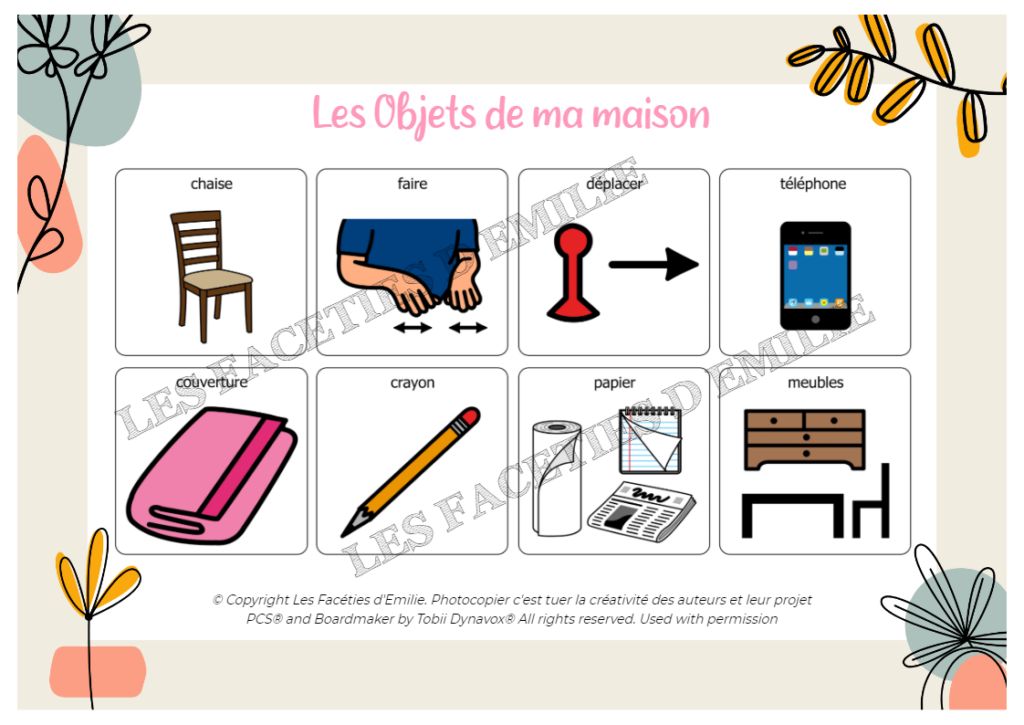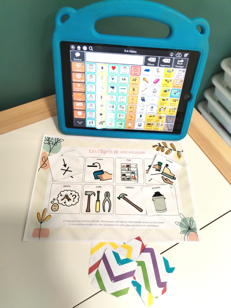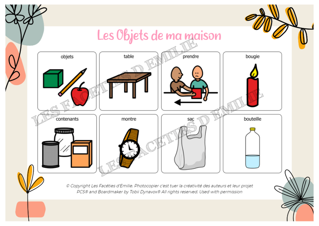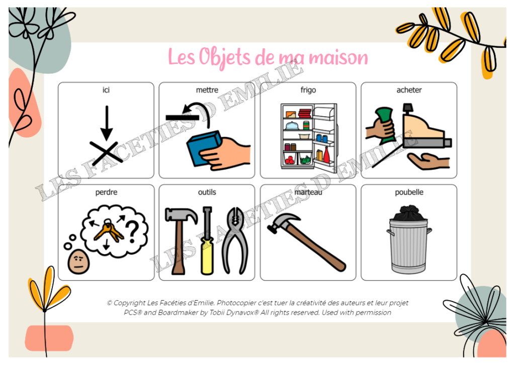 Grâce à ce loto vous pourrez communiquer autour de la page des Objets, mais également des listes de mots des meubles, des outils et des contenants