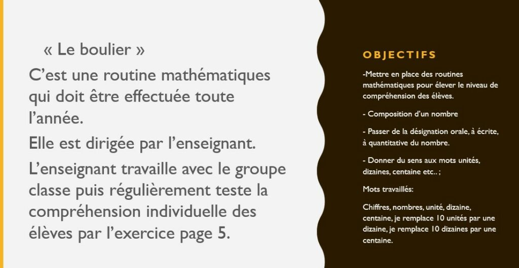 Ce que je propose, c’est une routine mathématiques à installer dans la classe.