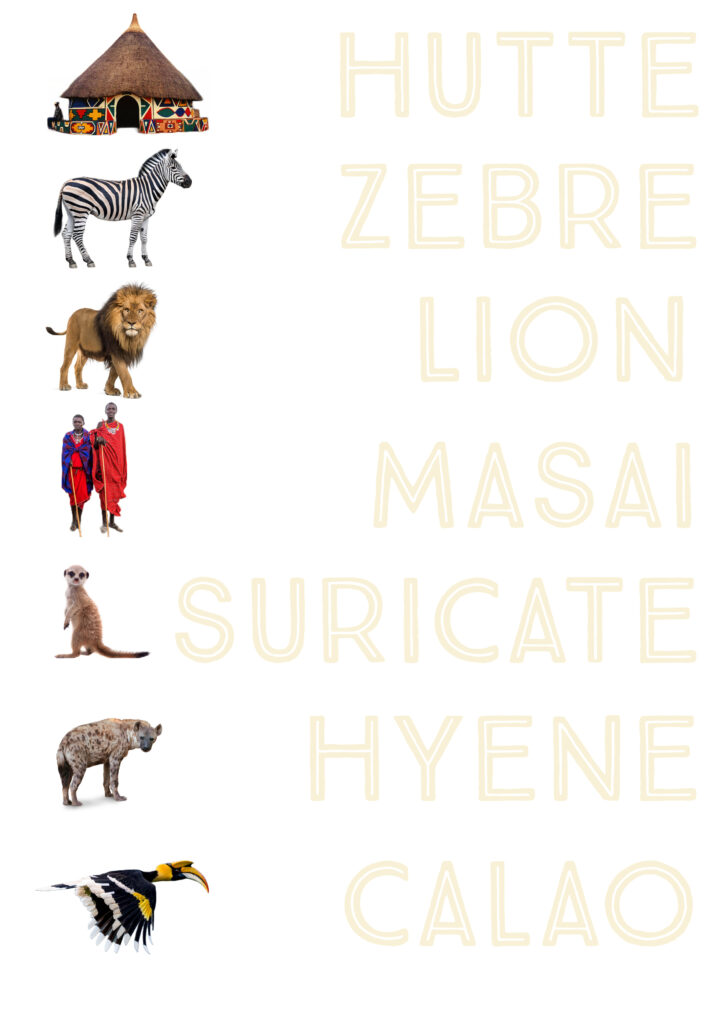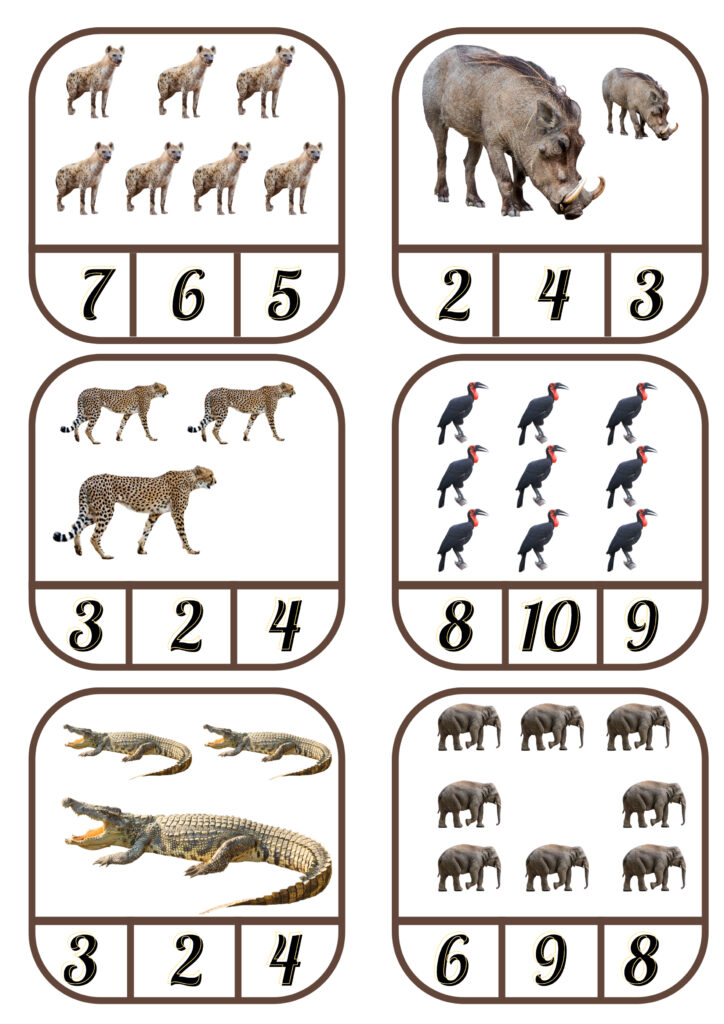 – 5 pages de cartes de nomenclature : 18 cartes animaux, 6 cartes sites naturels, 6 cartes population