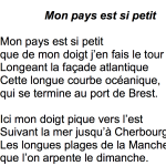 Une poésie en 6 strophes intitulée « Mon pays est si petit » du même auteur que « La journée » et « De janvier à décembre ».
