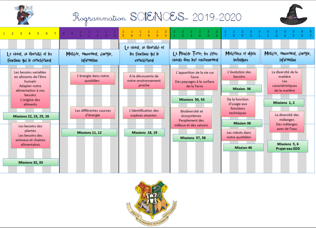 Programmations de Géographie, d’Histoire, de Sciences (basée sur « Mes 60 missions en Sciences et en Technologie Cycle 3 » Nathan) et en Anglais (basée sur le travail du site BRNE (voir site de Mallory).