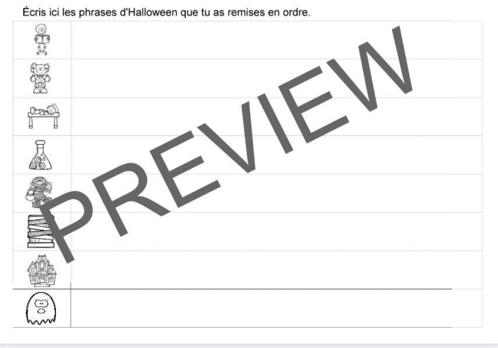 Une activité d’Halloween sur la remise en ordre de phrases simples pour les enfants de CP, CE1… (1ère et 2ème primaire).