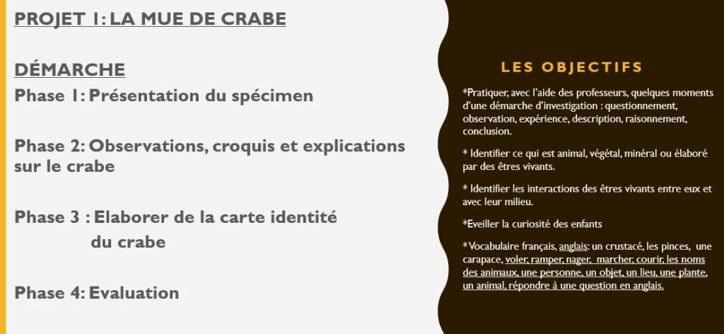 SCIENCE/ANGLAIS UN LABORATOIRE EN CLASSE GS/CP/CE1 Projet 2 : le crabe