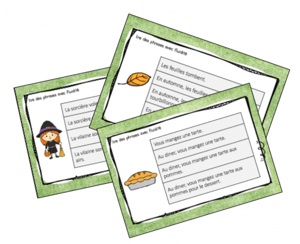 L’élève prend une carte. Il lit chaque phrase et remarque lui même ses progrès : les phrases sont de plus en plus faciles à décoder. Le but est d’automatiser la lecture.