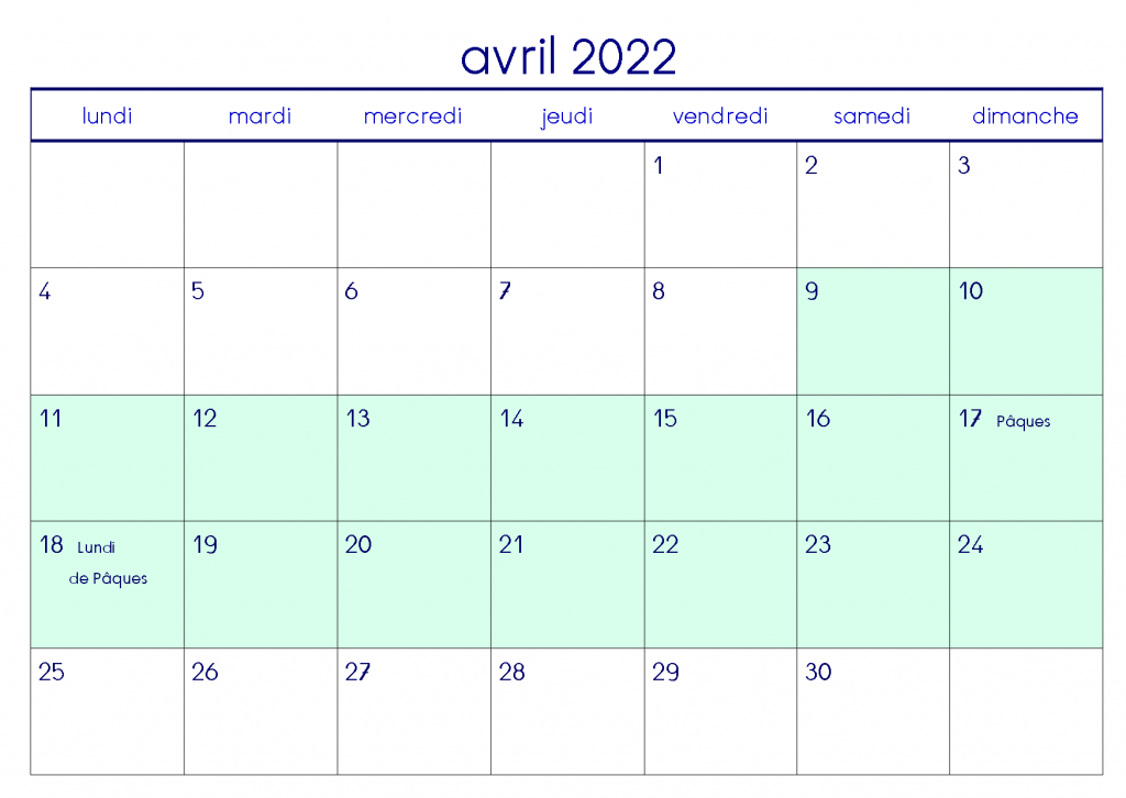 Voici la version spécifique pour la zone B avec la mise en couleur des vacances scolaires.